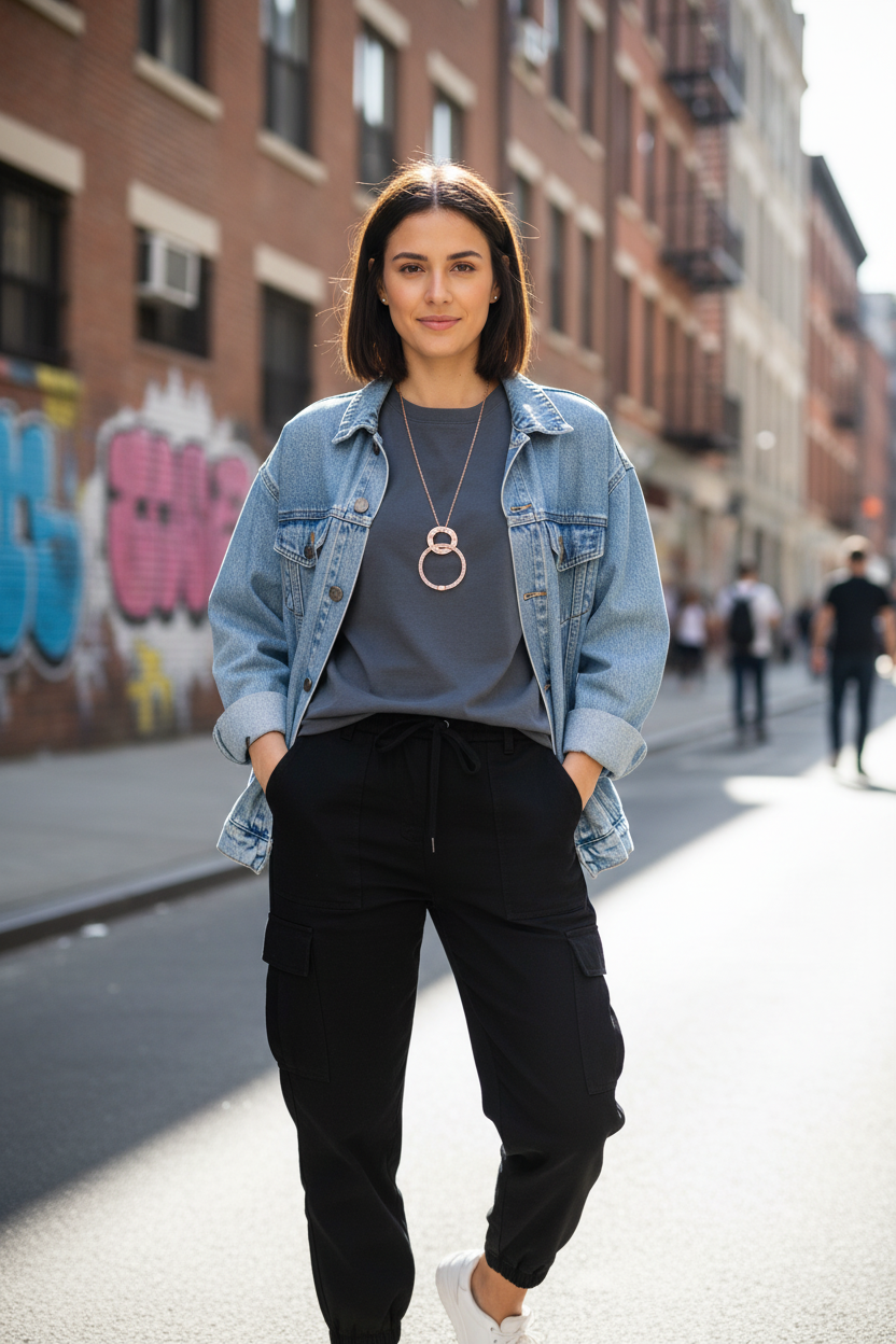 This versatile long necklace transitions effortlessly from casual daywear to sophisticated evening looks. Layer it with shorter chains for a trendy stacked effect, or let it shine as a statement piece over high-neck tops and dresses. The warm rose gold tone complements all skin tones and pairs beautifully with both casual streetwear and elegant evening attire.