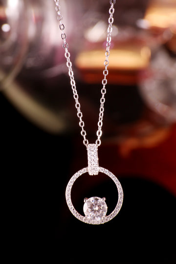 925 Silver Necklace with 1 ct Single Moissanite Stone set in round Pendant. It comes with the GRA certificate, Jewellery Pouch and Cleaning Cloth.