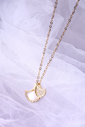 18K Gold Plated Necklace with clover leaves pendant make of Mother of Pearls and Zircon. It comes with jewellery pouch and cleaning cloth.